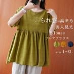 ブラウス 半袖 チュニック 体型カバー tシャツ レディース チェク柄 フレアブラウス 切り替え ブラウス チュニック丈 夏 トップス シャツブラウス ペプラムブラウス 切り替えブラウス ラウンドネック 無地 綿 コットン フレア Aライン プルオーバー ギャザー 春夏 おしゃれ きれいめ ゆったり お洒落L/XL