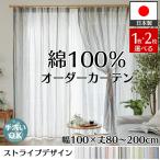 レース カーテン 2枚組 1枚入り 丈オーダー ストライプ 送料無料 幅100cm 綿100% コットン 天然素材 洗える 採光 非遮光 オシャレ 北欧 ナチュラル 洗える かわいい モロッカン 2枚 1枚 夏用 <ボムル ストライプ / 幅100cm×丈80〜200cm>