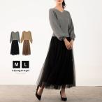 リブニットとチュールスカートを合わせた異素材ドッキングワンピース。
