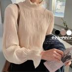 ブラウス 春 シフォン シャーリング ギャザー レディース シアー レース トップス シアートップス レイヤード ハイネック フリル フレア袖