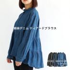 デニムシャツ ブラウス ブルー ネイビー ブラック 綿 麻 レディ
