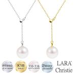 7~7.5mmのパールと、スライド式でデザインを変更できる、シンプルデザインのロングネックレス。シーンやコーディネートに合わせて長さを調節できます。
