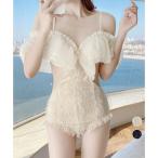 ビッグフリル オフショルダー 可愛い水着 スイムウェア オールインワン水着 オトナ女子ビーチ海水浴 チュール水着