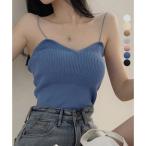 キャミトップ vネック キャミ シンプル 無地サマーニット ベーシック 重ね着インナー ニットキャミソール春夏