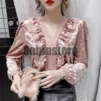 シャツ トップス ブラウス ベロアシャツ 長袖 レディース カットソー レース フリル ベロアトップス Vネック 春 秋 冬 通勤 OL フォーマル おしゃれ 着回し30代 40代 50代 フォーマル ブラウス レディース おしゃれ 長袖 レース シャツ トップス 着痩せ 通勤 新作 大人 可愛い 通勤 OL 大人