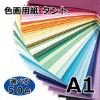 A1サイズ色画用紙のタント紙の50色の中から選べます。厚さは0.16mmで一般的な色画用紙の厚みになります。タント紙<100>A1サイズ50枚入り包装 画像と現品とは若干色が異なりますので、ご了承ください。