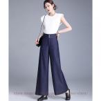 ワイドパンツ デニム レディース ジーンズ ガウチョパンツ デニムパンツ ゆったり ハイウエスト 美脚 体型カバー カジュアル