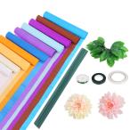数量と寸法:パッケージには 花作り用のクレープ紙が10ロール含まれており 各ロールの寸法は2.5 m x 25cmです。また 花の鉄線の茎50個 葉20枚 テープ2個 鉄線のロールも含まれています。複数の花や装飾品を作成するための十分な素材が提供されます。