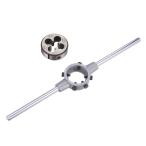 ダイストックレンチセット:38mmダイストックは、調整可能なネジでM12-M16ダイに適合します。M12 x 1.75ねじ切りラウンドダイ、外径38mm、円錐ロック穴、強力ロック、緩みなし。ラウンドダイは耐摩耗性に優れています。