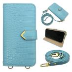 Xperia 1 III SO-51B SOG03 エクスペリア1マーク3 対応 スマホショルダー 手帳型 ケース (ブルー) myones 斜めがけ ストラップ 付き クロコ柄 型押し ワニ革調 スタンド機能 落下防止 カード収納 ニュアンスカラー くすみカラー PUレザー