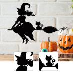 [ハロウィンデコレーション]: シンプルで鮮やかな黒のシルエットのメタルウォールデコオーナメント.魔女と黒猫の形をデザイン.クラシックなハロウィンの要素が強いお祭りの雰囲気を演出します.