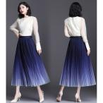 グラデーション チュールスカート 夏 ウエストゴム 膝丈
