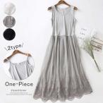 ロング丈ワンピース チュールワンピース レディース キャミソール タンクワンピー レース 刺繍 裏地付き
