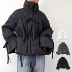 中綿ジャケット ブルゾン リボン スタンドカラー 無地 ミドル アウター レディース 中綿ジャケット ブルゾン リボン スタンドカラー 無地 ミドル アウター レディース エクリュ チャコールグレー ブラック