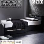 ベッド 黒 シングルベッド 収納付き ブラック おしゃれ ベット 収納 収納ベッド 宮 棚 コンセント ベッドフレーム マットレス&ホテルスタイルカバー付 シングル