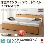 組立設置付 大容量収納ファミリーチェストベッド TRACT トラクト 薄型スタンダードポケットコイルマットレス付き A+C ワイドK200