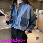 トップス シャツ デニムシャツ デニムブラウス ストライプ柄 襟付き 長袖 ファッション レディス レディース 秋冬 新作