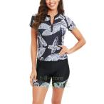 フィットネス水着 水着セット 2点セット 体型カバー水着 レディース 柄物 上下セット 日焼け防止 ビーチ マリンスポーツ 水泳 プール