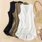 ジレ レディース 夏 綿麻風 薄手 ロング サマー バックスリット