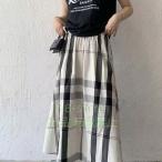 商品名:ロングスカート タータンチェック フレアスカート チェック 春 夏 秋 ロング丈 ミモレ丈 Aライン 体型カバー 大きめ ウエストゴム