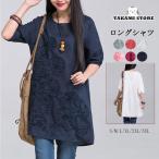 ブラウス レディース チュニック シャツ 夏 5分袖 刺繍 体型カバー Aライン 綿麻混 ゆっとり ラウンドネック 大きいサイズ 無地 カジュアル 20代 0代 40代 50代