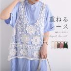 トレンドの透かし編みでインナーとのレイヤードスタイルを楽しめるレースベスト。