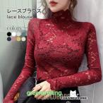 レースブラウス レディース インナーシャツ 総レース 長袖 ブラウス シャツ インナー 重ね着 透けトップス 肌見せ レトロ ハーフハイネック トップス 細身 春秋 冬 ブラック ホワイト グリーン ワインレッド ネイビー