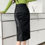 レディース 韓国風 ハイウエストフェイクレザースカート 美脚フィット感 バックスリット Aラインスカート 秋冬 きれいめ