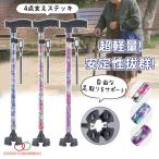 即納 杖 ステッキ 軽量 11段階調整 伸縮式 4点杖 滑り止め 歩行