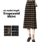 タータンチェック柄 ミモレ丈 台形スカート Aラインスカート