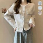 ジャケット ノーカラー ツイード金ボタン 羽織り オフィス ライ