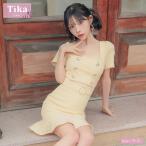 爆買韓国 ミニ フレア ミニドレス ツイード 袖あり