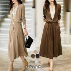 セットアップ レディース 秋冬 きれいめ 重ね着 長袖ニットカーディガン Aラインスカート 結婚式ドレス 着痩せ オシャレ 上品カジュアル 上品 通勤 OL