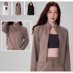 立ち襟ショートジャケット レディース スポーツトップス スタジャン 羽織り 春 秋 長袖 無地 薄手フィットネス