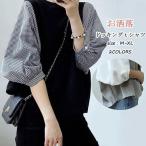 tシャツ 七分袖 レディース ブラウス 切替 ゆったり ドッキングブラウス ボリューム袖 バルーン袖 ドッキング 重ね着 ドルマンスリーブ とろみ ドロップショルダ チェック柄 無地 春夏 トップス 春夏用 ブラウス プリーツ切替 コクーン ゆったり カジュアル風 可愛い おしゃれ 20代 30代 40代 50代