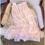 シフォン小花柄 プリーツスカート ロング マキシスカート