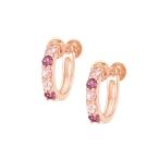 ピンク系カラーストーンをセットしたフープイヤリング。