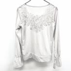 Riche glamour リシェグラマー M レディース 若干薄手 ウールライクカットソー 花柄レース 長袖 ポリエステル×ポリウレタン グレー
