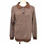 エクラン 【新品】ECLIN ニットポロ 襟付き セーター 花柄風 総柄 長袖 プルオーバー ポリ100% F ブラウン 茶×白 レディース