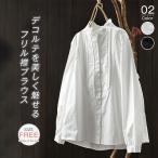 シャツ ブラウス レディース 長袖 トップス フリル襟ブラウス 綿