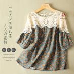 レディース Tシャツ プルオーバー 半袖 カットソー ブラウス レース 刺繍 チュニックブラウス ドッキング 切り替え 透かし編み Tシャツ トップス 花柄 異素材 ゆったり 体型カバー 配色 バイカラー 大人可愛い ファッション ナチュラル 春 夏 秋 総柄 送料無料