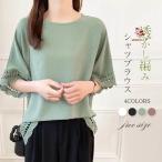 tシャツ レディース 半袖 カットソー 夏 ブラウス Tシャツ トップス 五分袖 ブラウス ロングTシャツ フリーサイズ ゆったり レース 無地 着痩せ オフィス 通勤 お洒落 ガーリー エレガント 白 黒 グリーン ブラウン 送料無料