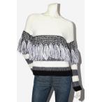 Chesty チェスティ アルパカ混 ラメ ボーダー フリンジ ニット セーター F WHITE ホワイト 9W128 /◆☆ レディース