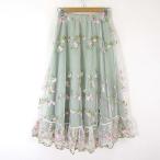 未使用品 スカート フレア ティアード チュール 花柄 刺繍 レイヤード スカラップヘム ロング マキシ ストレッチ S 白 マルチカラー 美品