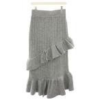 未使用品 アドニシス Adonisis ニットスカート ロング フレア イージー フリル ケーブル編み タグ付き F グレー 220323 /YT レディース