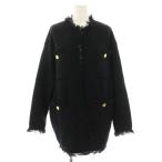 アダワス ADWAS ニットツイードジャケット ノーカラージャケット アウター フリンジ 金ボタン FREE 黒 ブラック ADWS-201-09 レディース