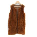 リシェグラマー Riche glamour フェイクファーベスト ジャケット ロング丈 前開き M 茶色 ブラウン /HO3 レディース