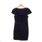 BCBGMAXAZRIA タック フレア ワンピース ドレス キャップスリーブ ひざ丈 切替 チュール 無地 コットン 綿 2 ブラック 黒 /FT49 レディース