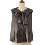 ロイスクレヨン Lois CRAYON ブラウス ラウンドカラー パイピング リボン ノースリーブ M グレー レディース