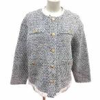 ティティベイト titivate ノーカラージャケット ツイード フリンジ M 白 ホワイト 黒 ブラック /YK レディース